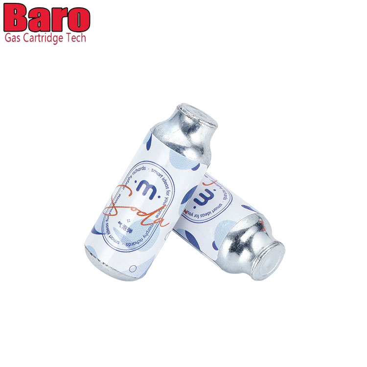 Cartridges CO2 sunt 100% cibum et potum tutum. Omnes CO2 cartridges producimus sunt cibi gradus cartridges. Quisque cartridge est 99,9% purus et utitur cibo-gradu carbonis dioxide. Processus technologiae: Vapor purgans intus cylindrum.